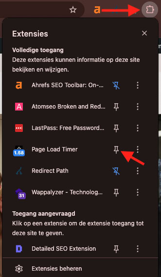 Lars tipt de Page Load Timer extensie voor iedereen die wil zien hoe snel een pagina laadt. Maak de extensie na het installeren vast aan de balk. Je ziet dan bij elke pagina precies hoe lang het laden heeft geduurd.